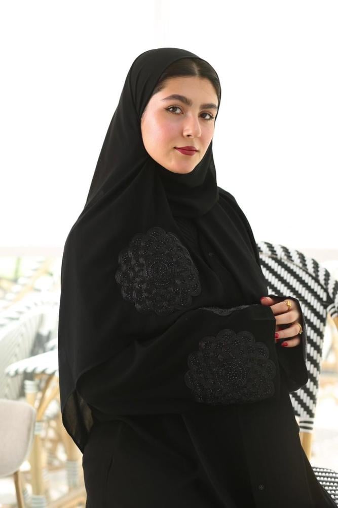 - الملحقات: طرحة مطرزة متناسقة مع العباية.